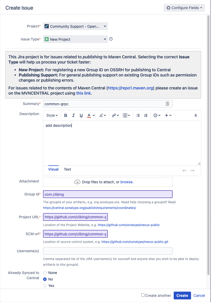 If you do not own this domain, you may also choose a different Group Id that reflects your project hosting. io.github.clibing would be valid based on your Project URL. To continue the registration process, please follow these steps: