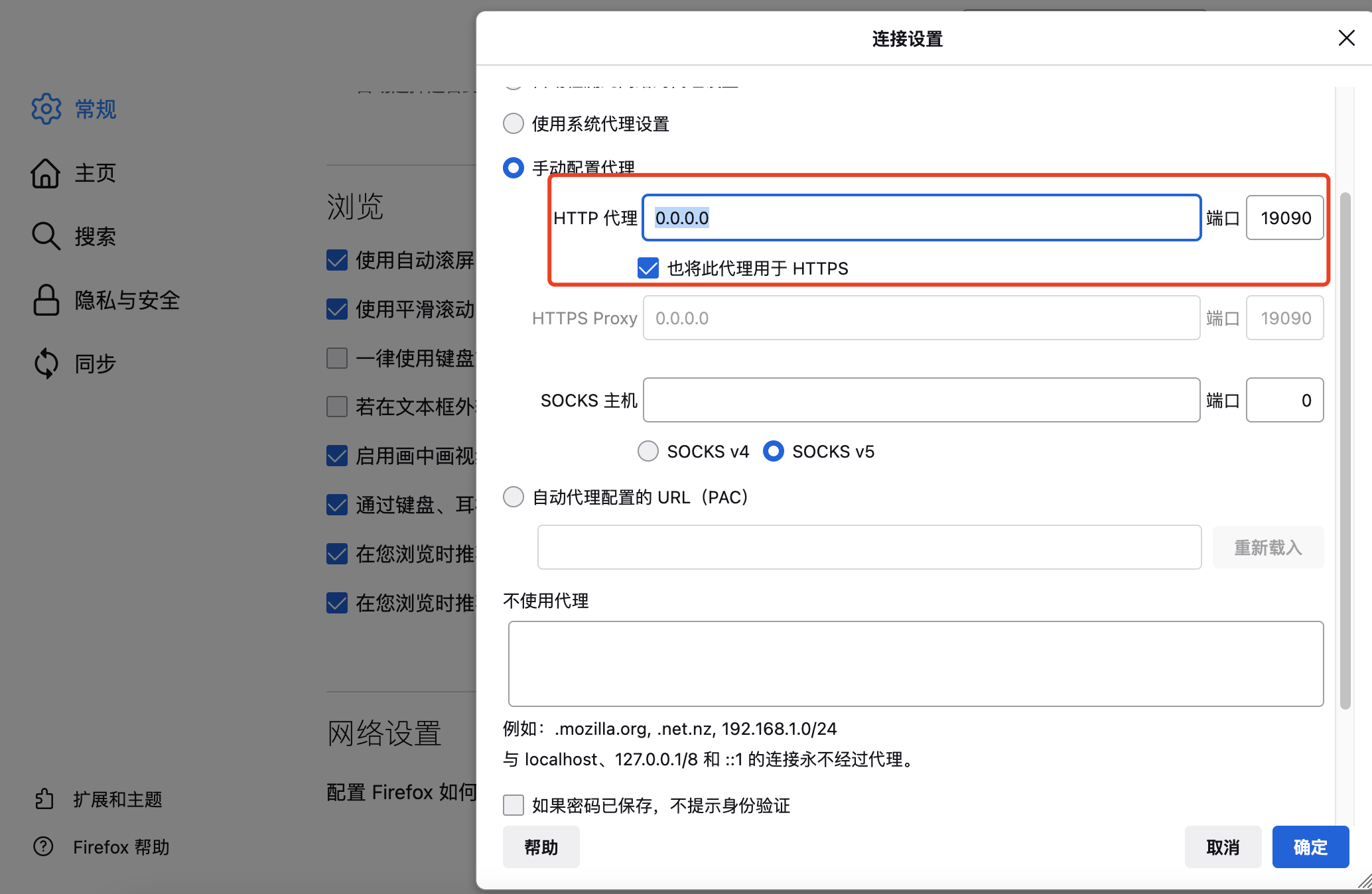 - Firefox –> 偏好设置 –> 网络设置 –> 选择